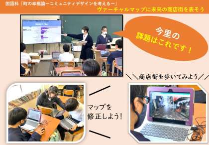 AR機能を活用して、ヴァーチャルマップを作成し、ヴァーチャルの世界において児童が提案した未来の商店街を表現しました。児童が考えたユーモアがあり、アイデアたっぷりのマップで、10年後の未来の姿がイメージできました。