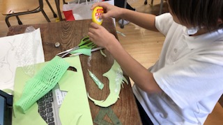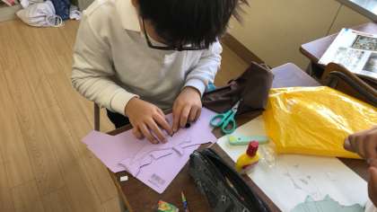 糸をまきつけたり、段ボールを並べたりと、どんな模様ができるか楽しみです。