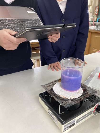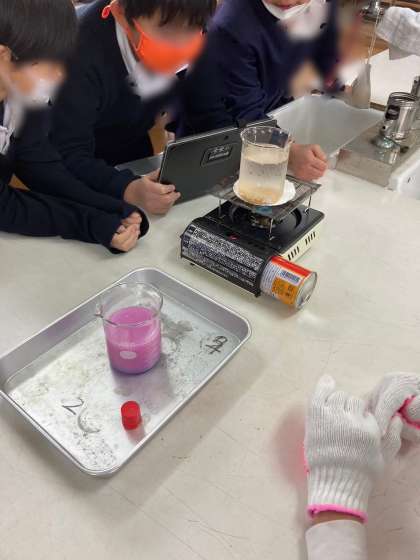 昨日の実験を受けて、試験管からビーカーに容器を変えて実験しました。