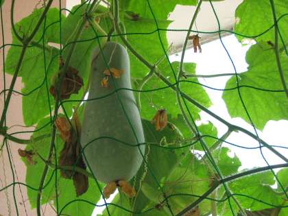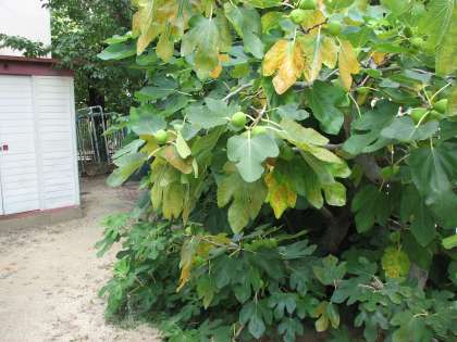 写真は、いちじくの木と実、それに職員室前で育てている地域からいただいた、「とうがん」の実です。
