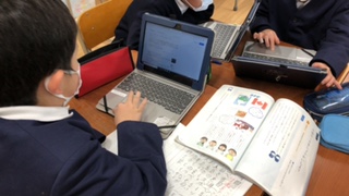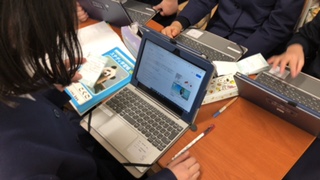 調べる国のことで、言葉やお金、スポーツなど7つ調べることを決め、グループ内で役割分担し、一人一つ、発表ノートにまとめることにしました。