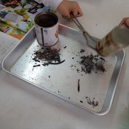 「黒っぽい燃えかす。」