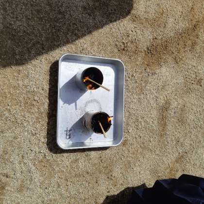 穴をあけた缶と、あいていない缶を燃やしてみました。