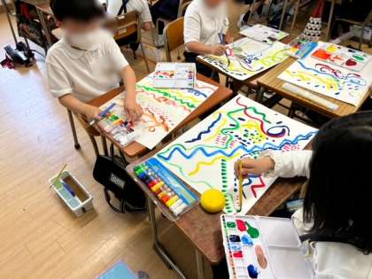 今日は図画工作科「絵の具と水のハーモニー」を行いました。