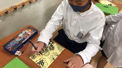 ゼンタングルの模様例を見ながら、自分が描きたいデザインを考えて取り組みました。