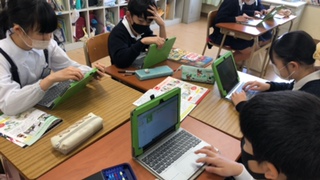 グループごとに調べるテーマを決め、コラボノートにまとめました。