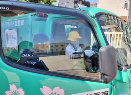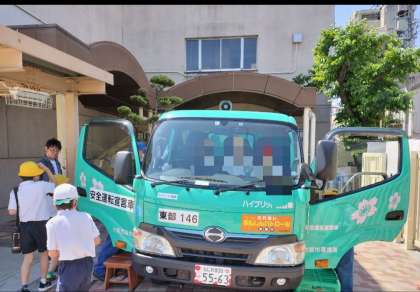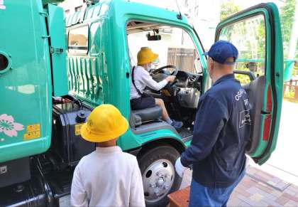 児童が乗ってみると!大きな運転席にびっくりでした。