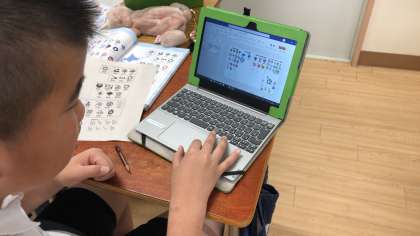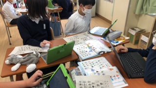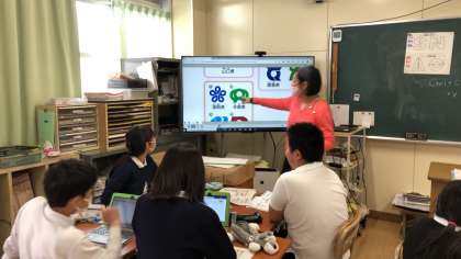 タブレット内にある都道府県マークの中から、線対称や点対称なマークを見つけてグループ分けをしました。