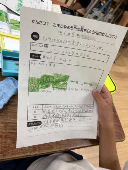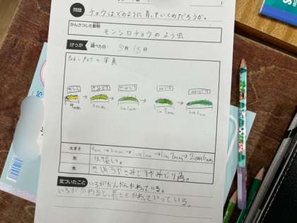 モンシロチョウの幼虫の観察をしました。