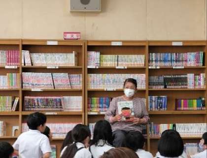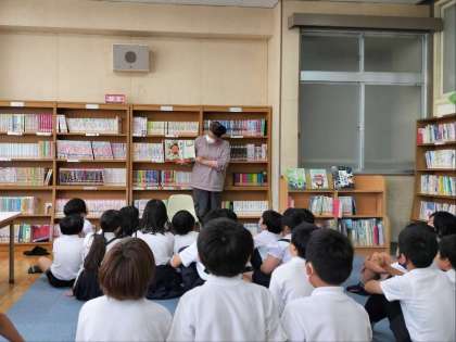 図書の時間には、いつも初めに読み聞かせを行っています。