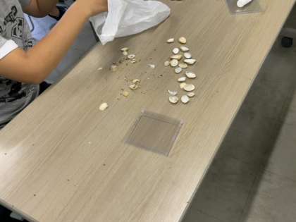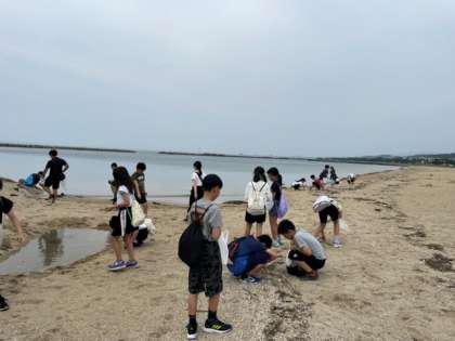 海岸で好きな貝がらを拾って、シェルメモリーを作ります。