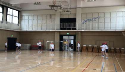 二人組でアンダートスやオーバートス、サーブの練習。