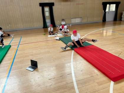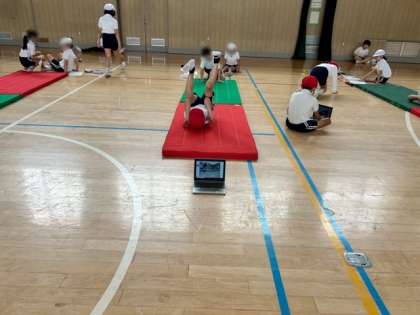 体育科では、マット運動をしています。