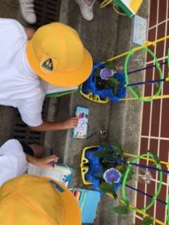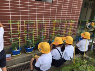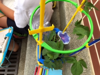 きょうだいで同じ日に同じ色の花が咲いています!あさがおもなかよしです。