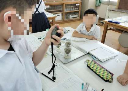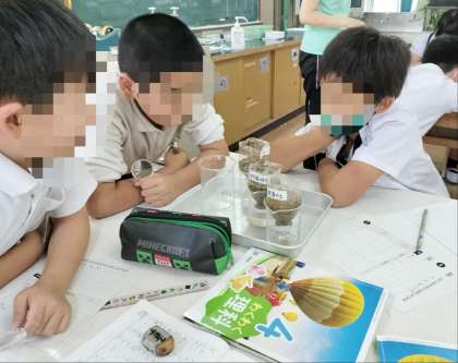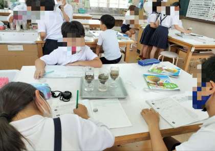 「じゃり」「土」「砂」の3つ、それぞれに水を流し、流れる水がどのように変化するかを実験しました。