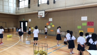 一人3回ボールを蹴って、かべの得点をねらいます。