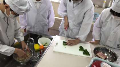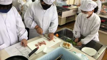 各グループごとに炒めたいものを考え、コラボノートに書いた食材を使って調理しました。