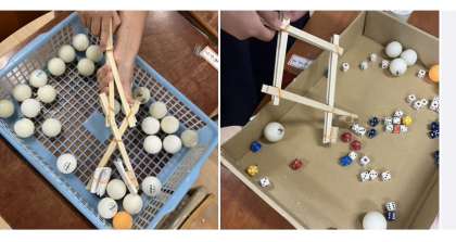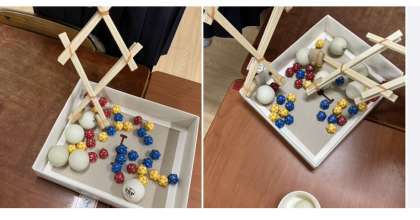 時間の終わりには、ピンポン玉やサイコロを時間内に何個つかめるか競争しました。とても楽しく活動することができました。