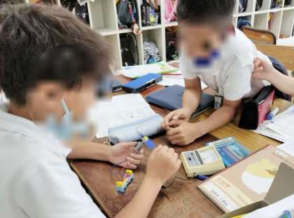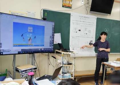 かん電池で回路をつなぐ向きと、モーターの回る向きの関係を調べました。