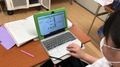 黒板に並び方を全部書きましたが、もっと簡単に表す方法はないか、コラボノートを使い、表し方を考えました。