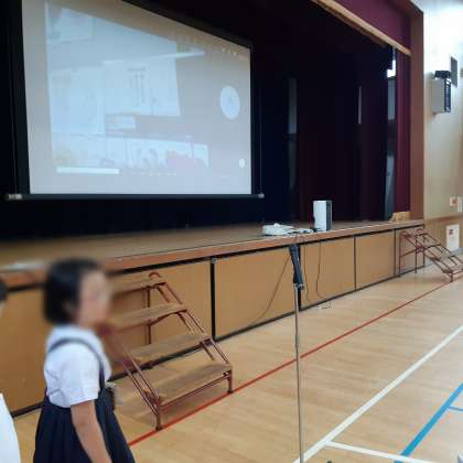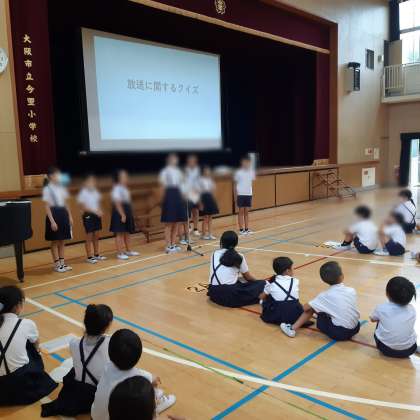 みんなに興味をもってもらうためにクイズ形式にして放送委員のことを紹介しました。