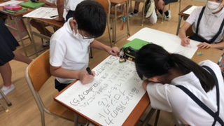 呼びかけ用のポスターやチラシを作成し、下級生や保育園、幼稚園へお願いする内容を考えました。