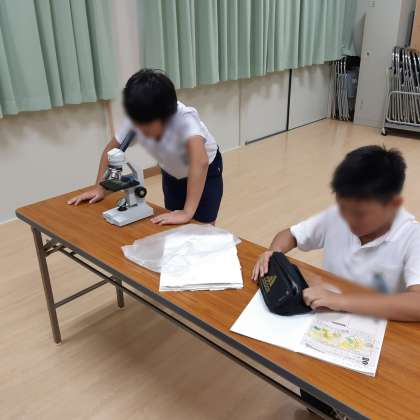 けんび鏡を使って観察しました。