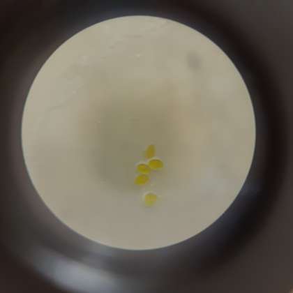 肉眼でみると粉に見えましたが、一つ一つはだ円形の黄色いかたまりでした。