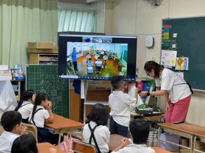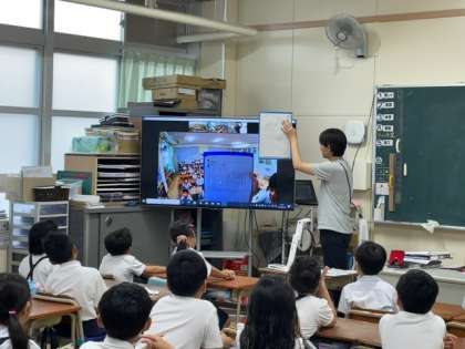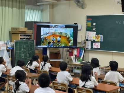 今日は低学年が「夏休みの思い出」を発表しての交流です。