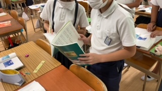 本文の中の描写や言葉に注目し、想像したことをノートに書いて友だちと話し合いました。