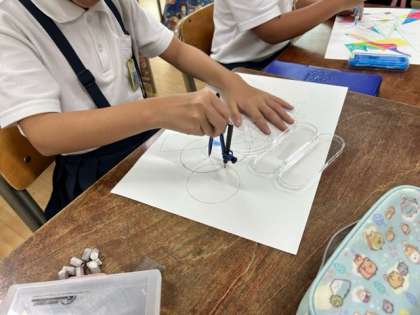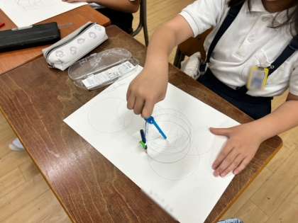 その中で、今度算数科で使うコンパスの練習をしました。