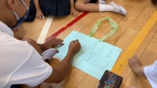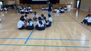 リーダーを中心に歩く道順や並び方を確認し、班の名前、めあて、自由時間で遊ぶ内容などを決めました。