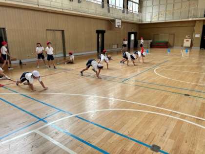 体育では様々な動きを通して、体幹や腕、足など全身を使って運動しています。