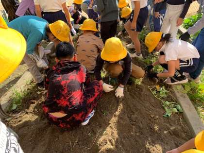 一生懸命に土を掘り起こし、さつまいもを探しました。