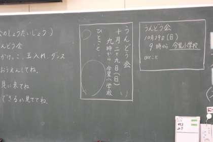今回は運動会の招待状を書きました。日時や場所、運動会に関するイラストを入れ素敵な葉書を完成させました。