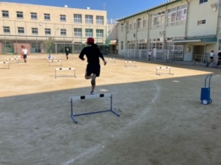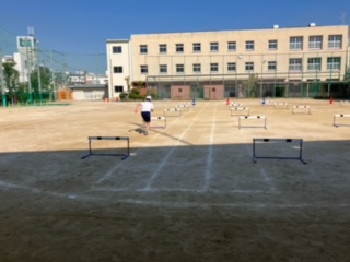 ハードル走を速く走るコツは、とぶのではなく、またぐことです。