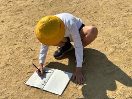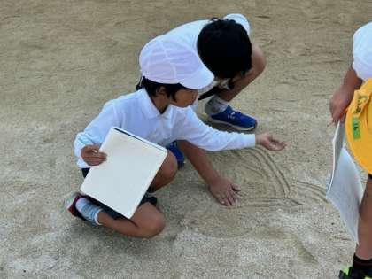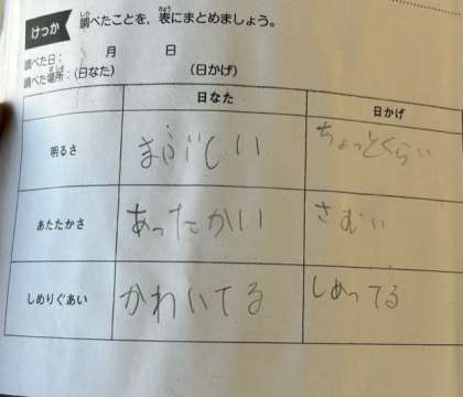 理科では、日なたと日かげの地面の様子を調べました。