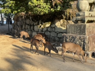 あちこちに鹿がいます。