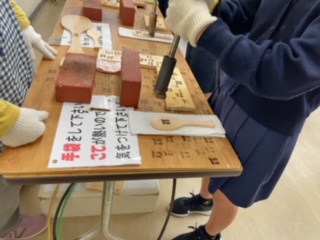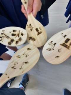 みがきあげたしゃもじに、好きな焼き印をつけて、世界に一つだけのしゃもじを作りました。