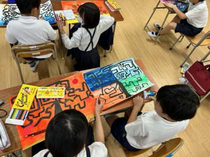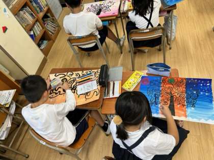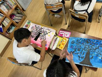 今日も図画工作科で「〇〇の木のお話」を描きました。