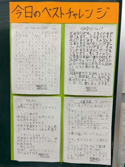 工夫して頑張っている4人を、毎日後ろの黒板に掲示しています。