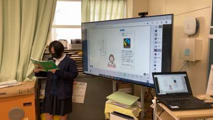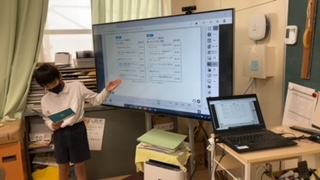 みんなの前で使った資料を提示して、どの部分に着目したのか指示しながら意見文を読みました。