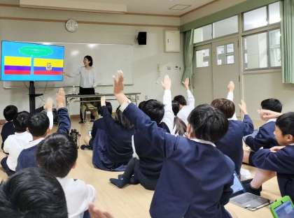 これまで4年生は社会科で災害について学んでいました。学習の中で、子どもたちの中から「日本以外の国ではどんな災害があるのだろう」という問いが生まれ、エクアドルについて教示いただきました。