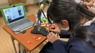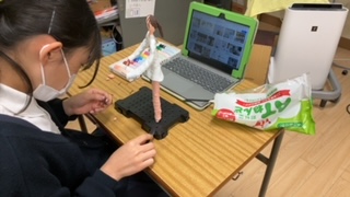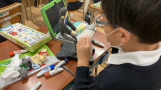 紙粘土に絵の具を入れてよく練り、形を決めた芯棒につけます。