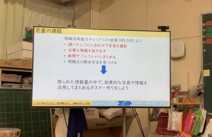 情報活用チェックリストの中で、児童の課題となる点がわかりました。その中から効果的な写真や情報を活用してまとめるポスター作りをすることにしました。