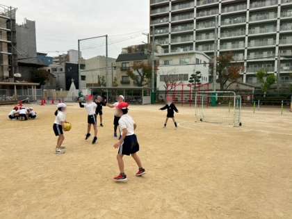 始めはボールのところに全員が集まっていましたが、今ではコートを広く使って試合できています。