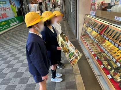 今日は総合的な学習の「商店街アドベンチャー〜ポスターでもり上げよう〜」で作っていたポスターを商店街に掲示してもらいに行きました。