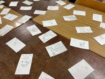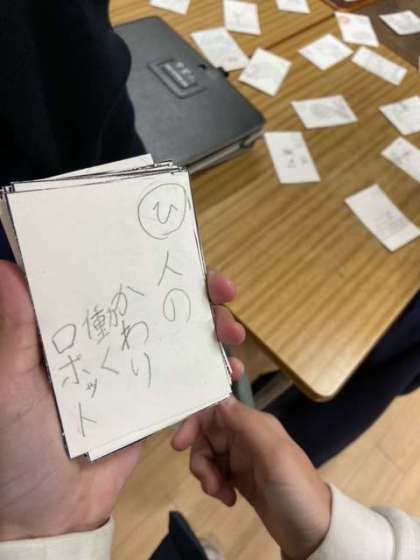 授業で学習した内容をカルタにまとめました。白熱した戦いになりました。