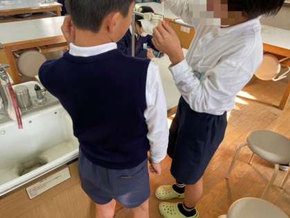 ふりこのふれる時間について実験しました。ふれはばだけを変えて、一往復する時間は変わるのか実験しました。