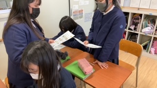 アップとルーズの写真の良さを考えながら理由を友だちに話しました。